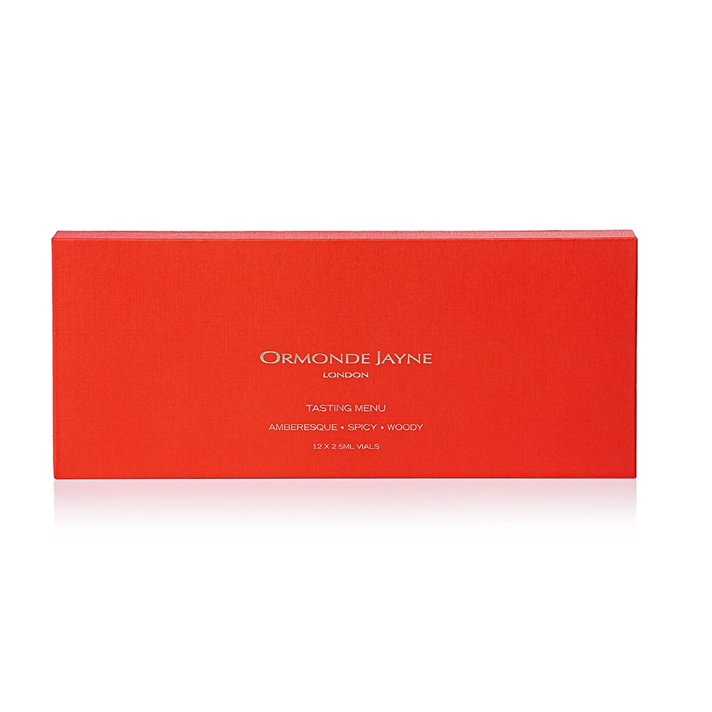 Our descriptive menu will guide you through Ormonde Jayne's amberesque, woody and spicy scents to get the best out of your TASTING MENU, ideally, try one perfume per day, if you have the patience.